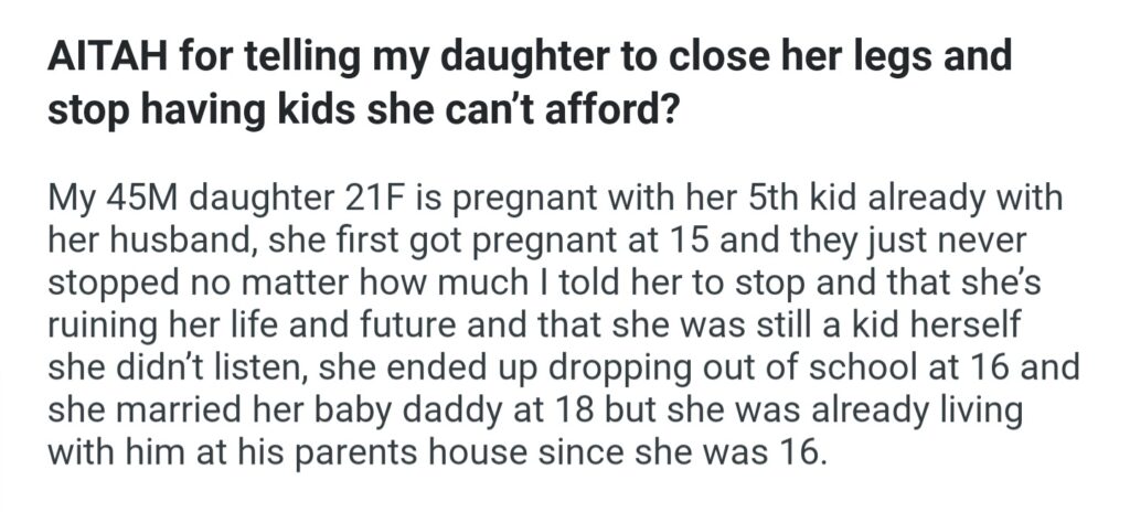 AITAH For Telling My Daughter To Close Her Legs And Stop Having Kids She Can”t Afford