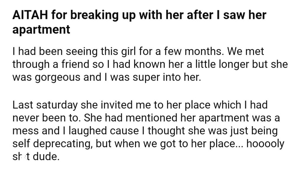 AITAH For Up With Her After I Saw Her Apartment