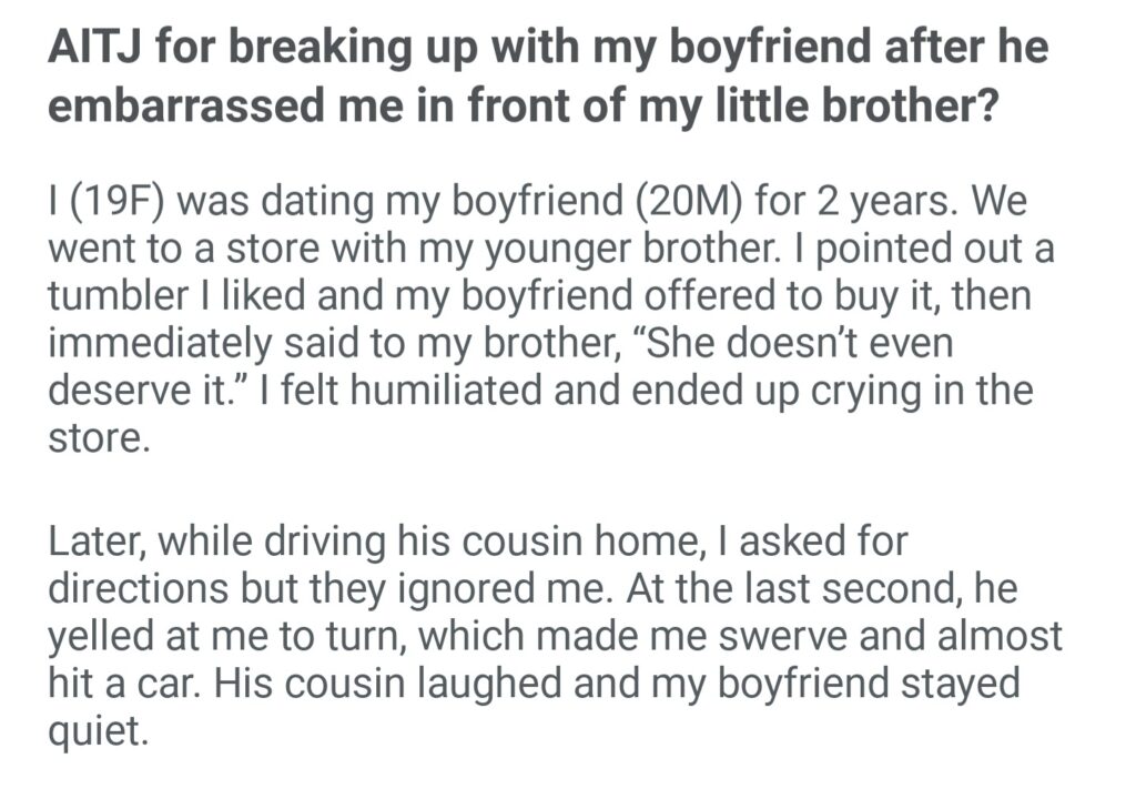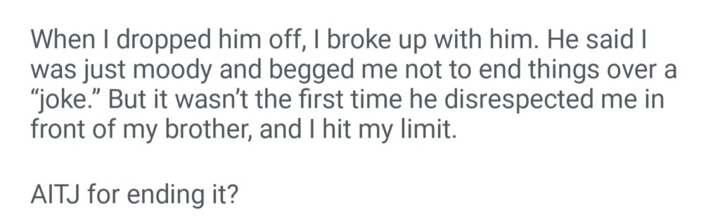 AITJ For Breaking Up With My Boyfriend After He Me In Front Of Little Brother