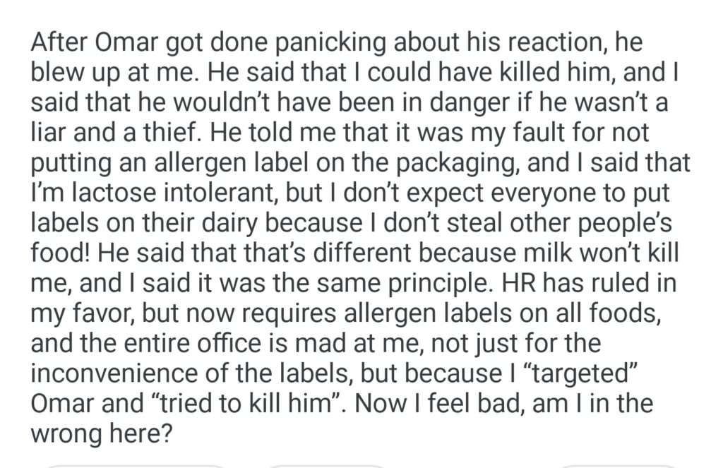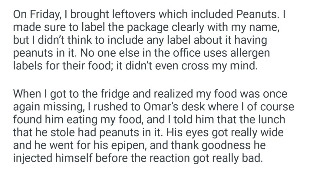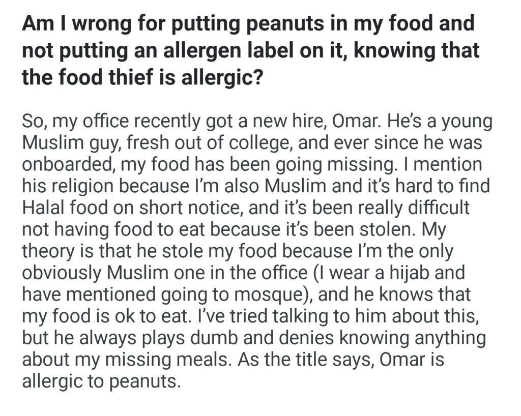 Am I Wrong For Putting Peanuts In My Food And Not Putting An Allergen Label On It Knowing That The Food Theif Is Allergic