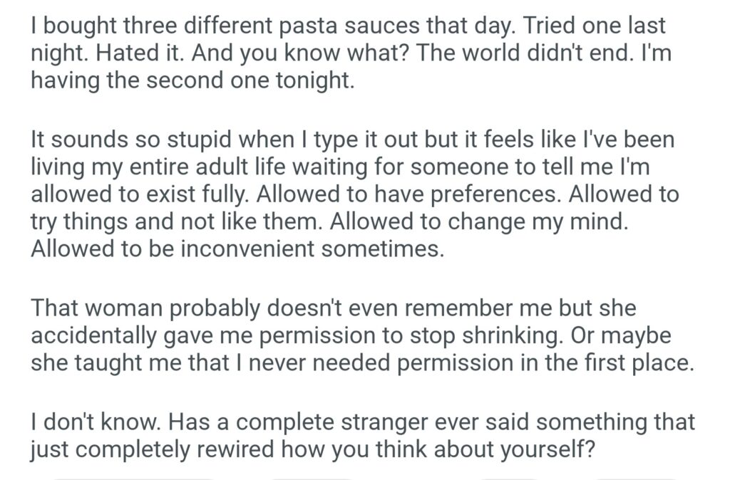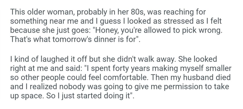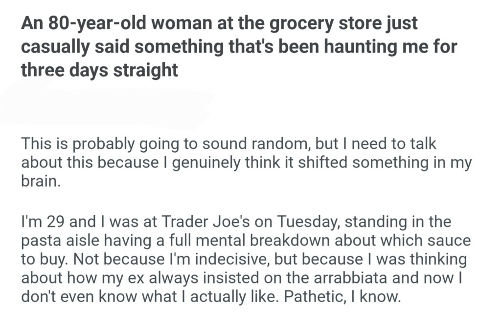 An 80 Year Old Woman At The Grocery Store Just Casually Said Something That’s Been Haunting Me For Three Days Straight