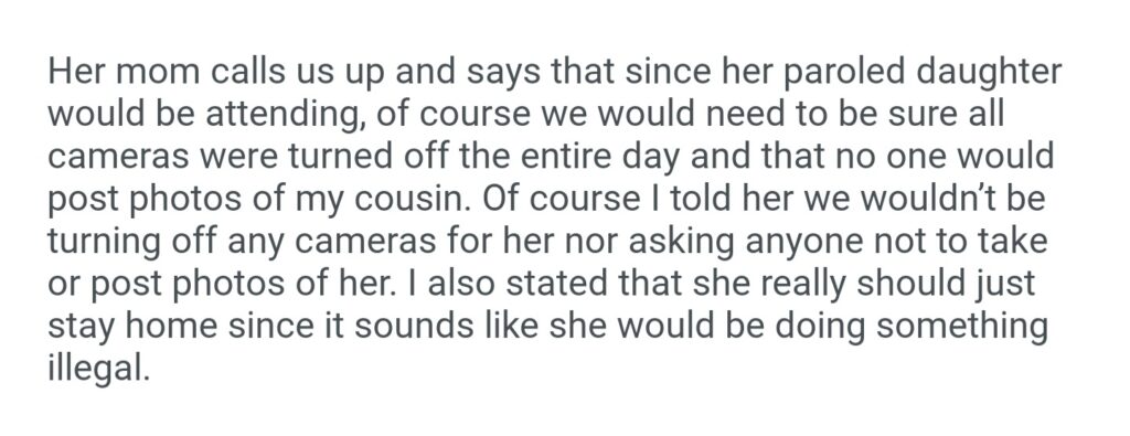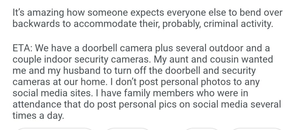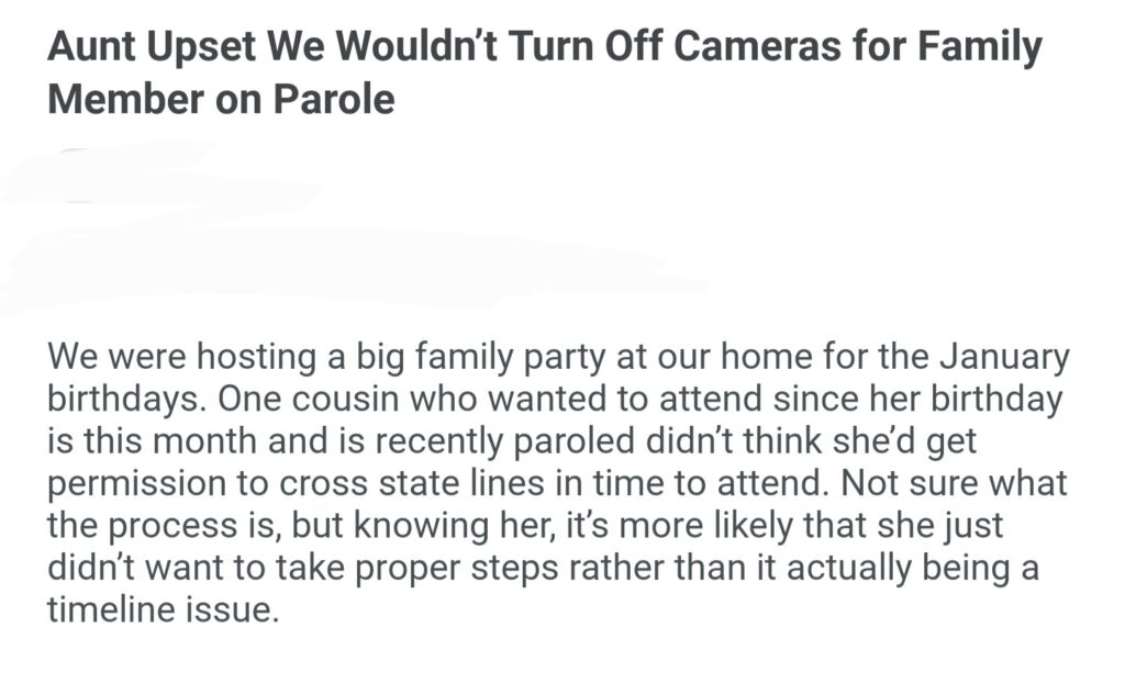 Aunt Upset We Wouldn’t Off Cameras For Family Member