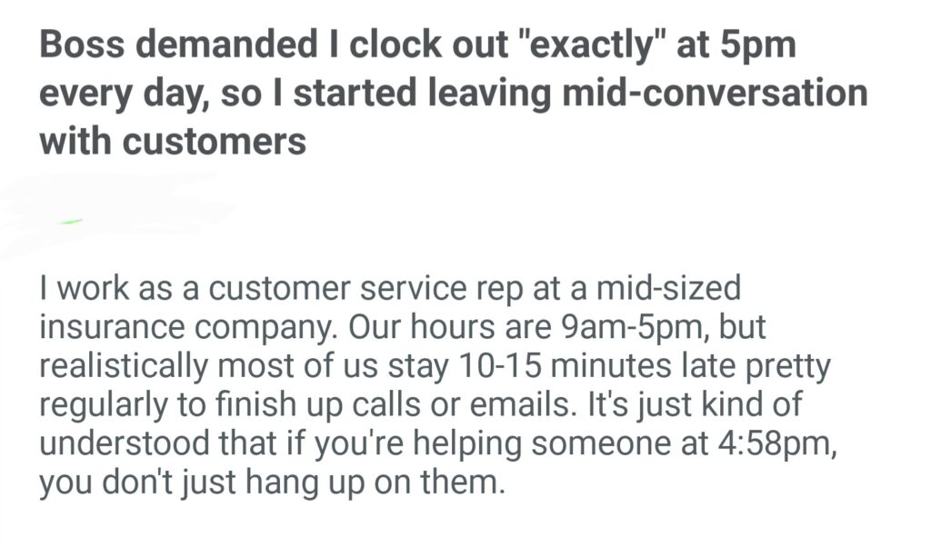 Boss Demanded I Clock Exactly At 5pm Everyday So I Started Leaving Mid Conversation With Customers