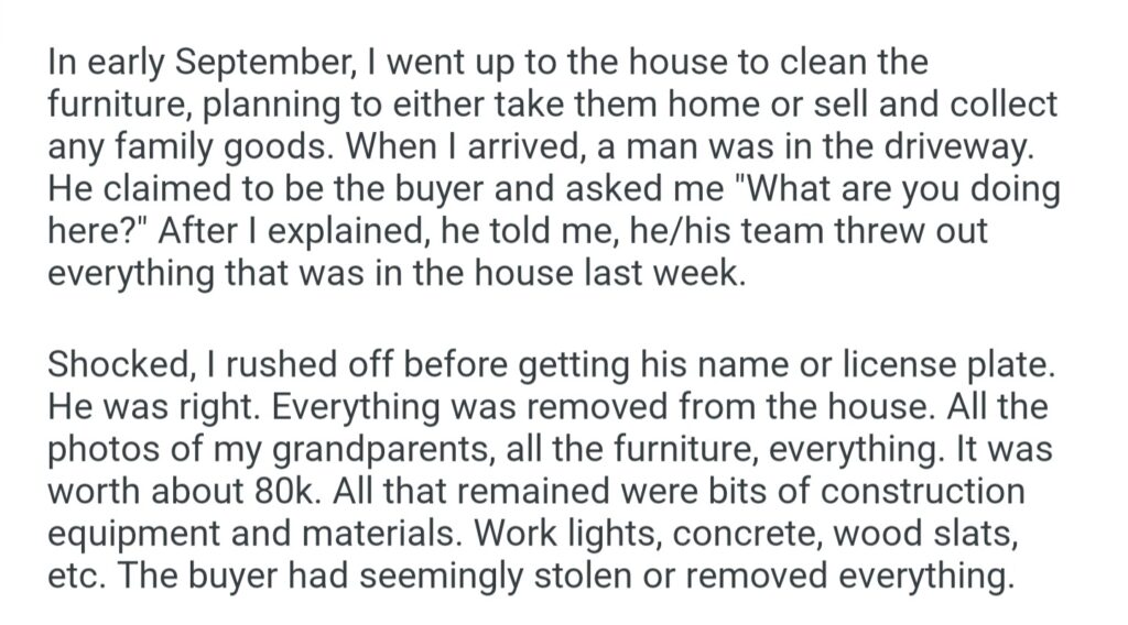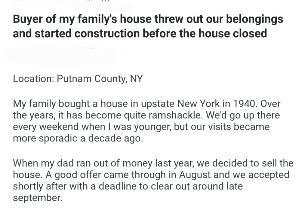 Buyer Of My Family’s House Our Belongings And Started Construction Before The House Closed