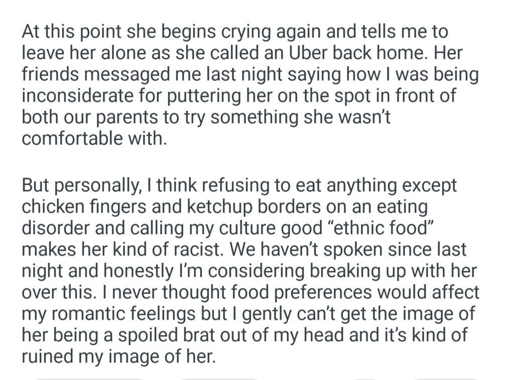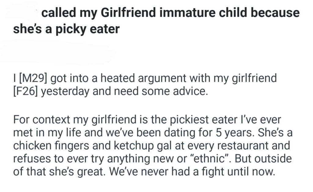Called My Girlfriend Immature Child Becuase She’s Picky Eater