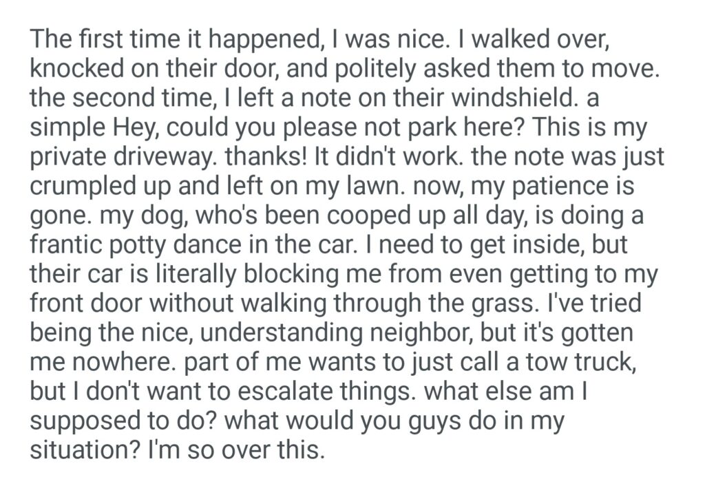 Come Home To Find My Neighbor’s Car In My Driveway Again