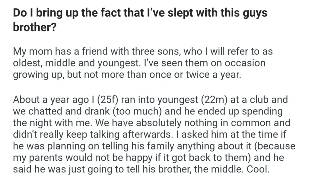 Do I Bring Up The Fact That I’ve Slept With Guys Brother