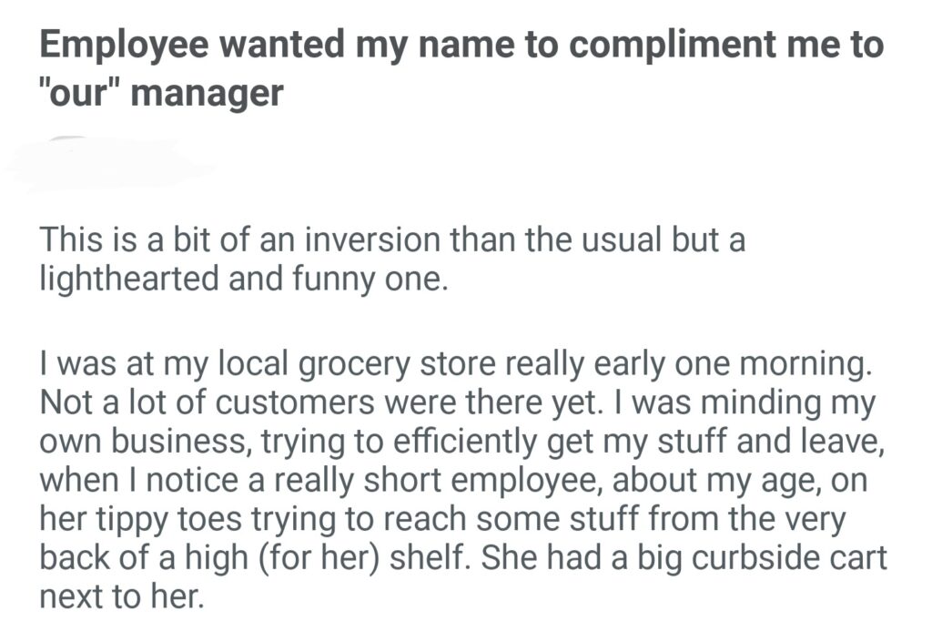Employee Wanted My Name To Compliment Me To Our Manager