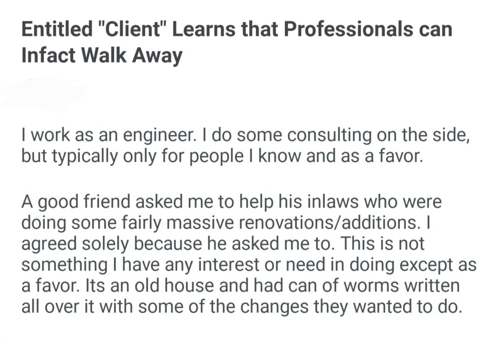 Entitled Clinet Learns That Professionals Can Infact Walk Away