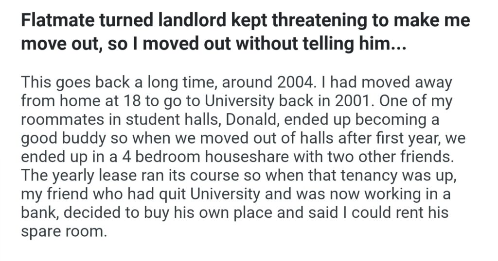 Flatmate Truned Landlord Kept To Make Me Move So I Move Without Telling Him
