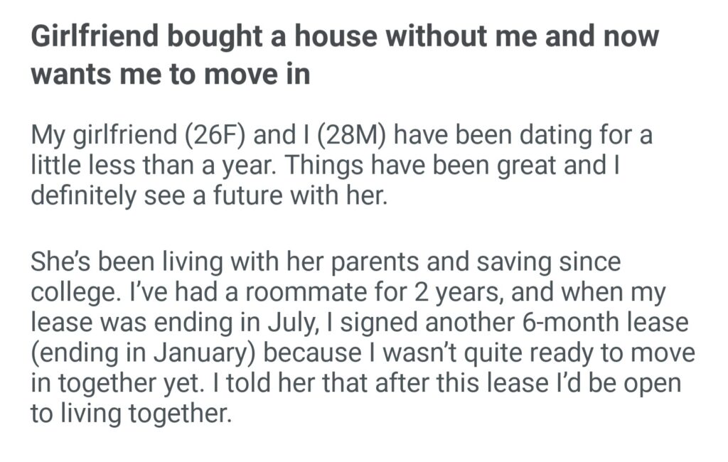 Girlfriend Bought A House Without Me And Now Wants Me To Move In