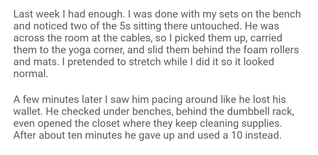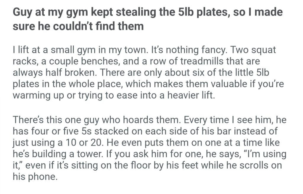 Guy At My Gym Kept Stealing The 5lb Plates So I Made Sure He Couldn’t Find Them