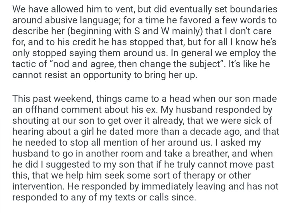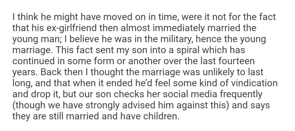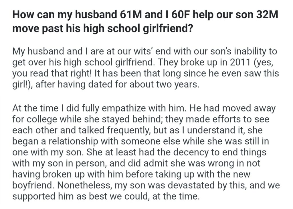 How Can My Husband 61M And I 60f Help Our Son 32M Move Past His High School Girlfriend