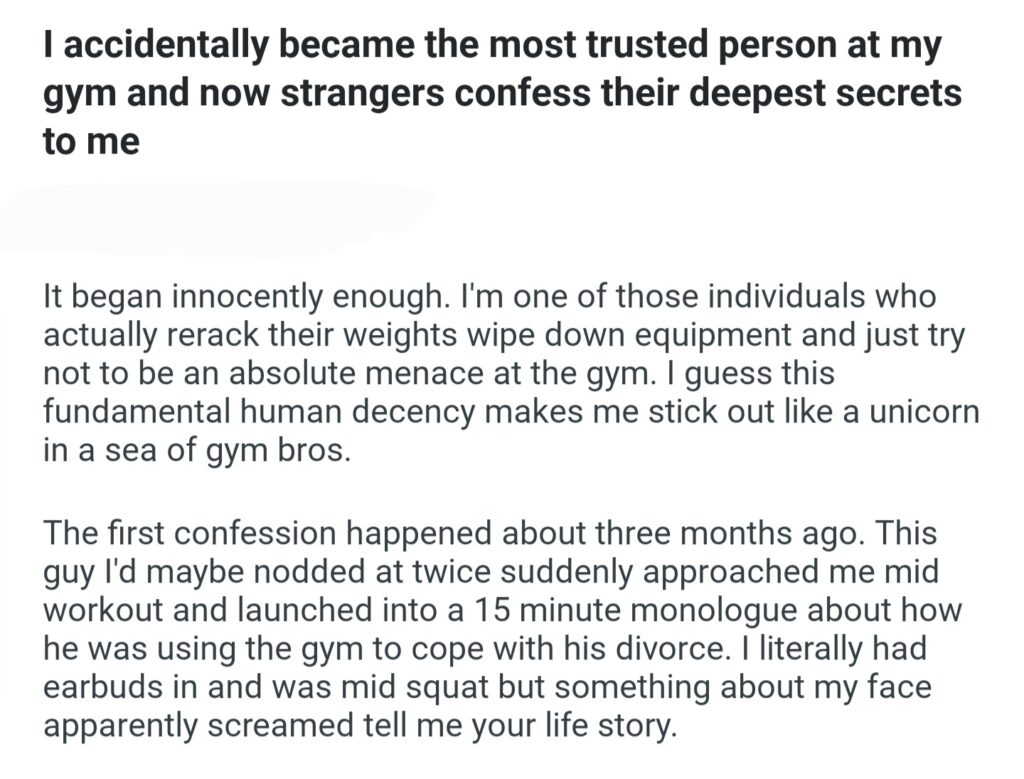 I Accidentally Become The Most Trusted Person At My Gym And Now Strangers Confess Their Deepest Secrets To Me