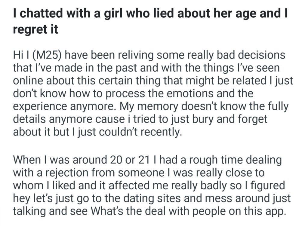 I Chatted With A Girl Lied About Her Age And I Regret It