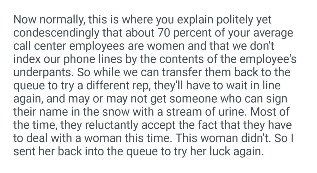 I Don’t Think You Can Help Me Miss I Need To Speak To A Man In Your Department