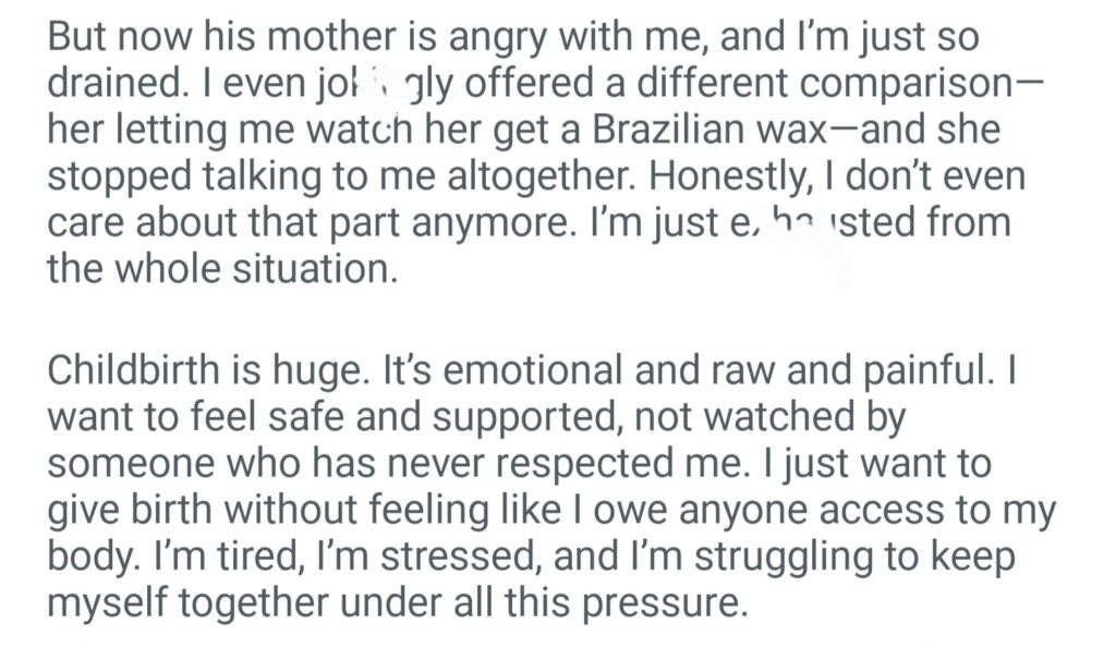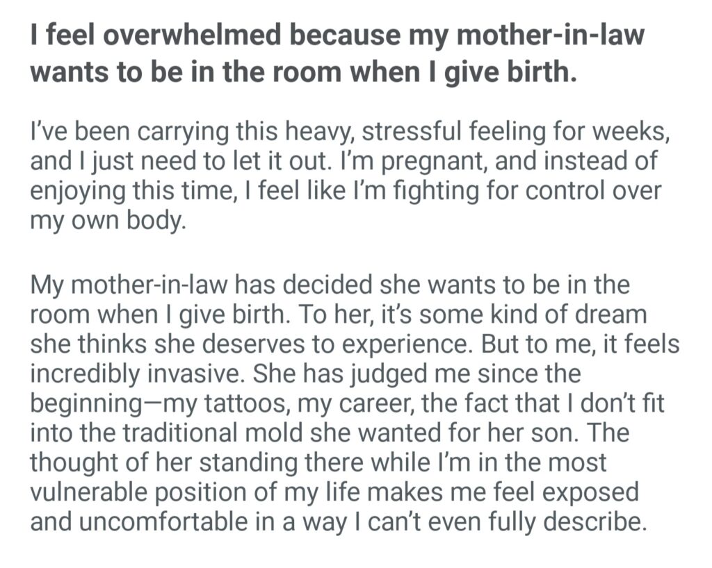 I Feel Because My Mother In Law Wants To Be In The Room When I Gave Birth