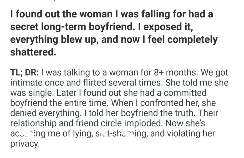 I Found Out Woman I Was Falling For Had A Secret Long Term Boyfriend