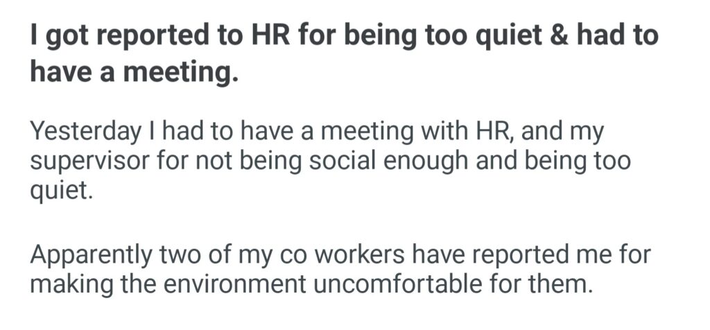 I Got Reported To HR For Being Too Quiet Had To Have A Meeting