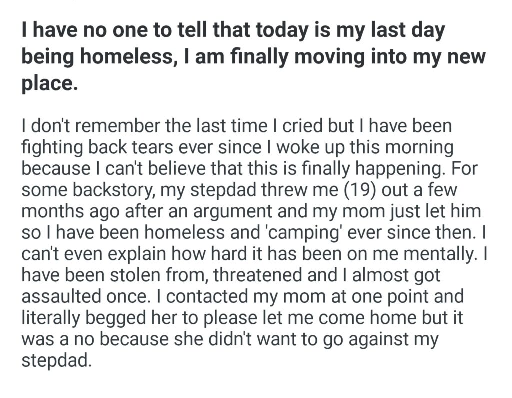 I Have No One To Tell That Today Is My Last Day Being Homeless I A M Finally Moving Into My New Place