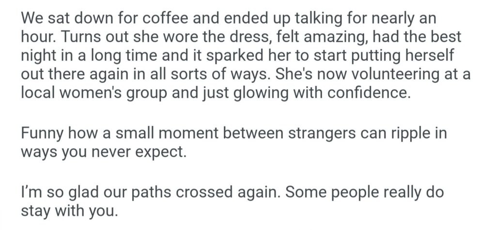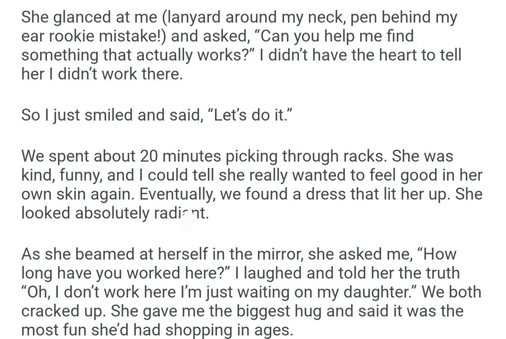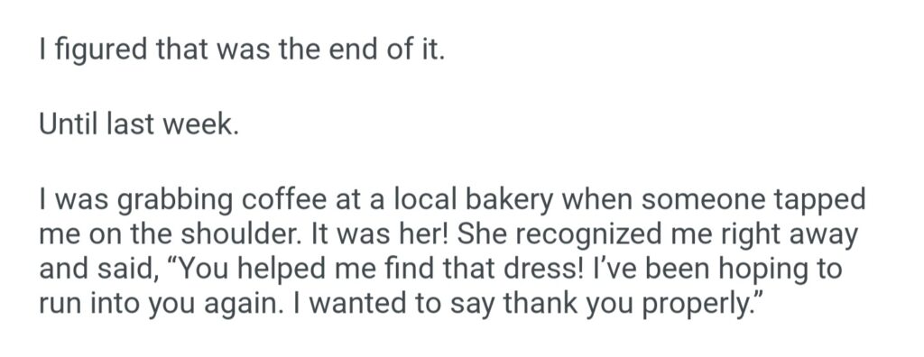 I Helped A Woman Pick A Dress At Ann Taylor Months Later She Found Me Again