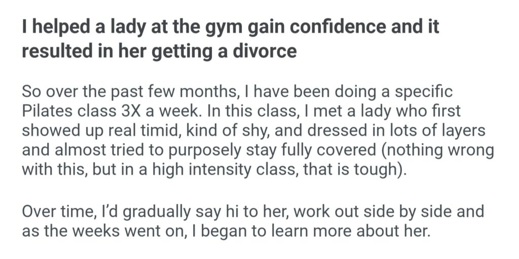 I Heped A Lady At The Gym Gain Confidence And It Resulted In Her Getting A Divorce
