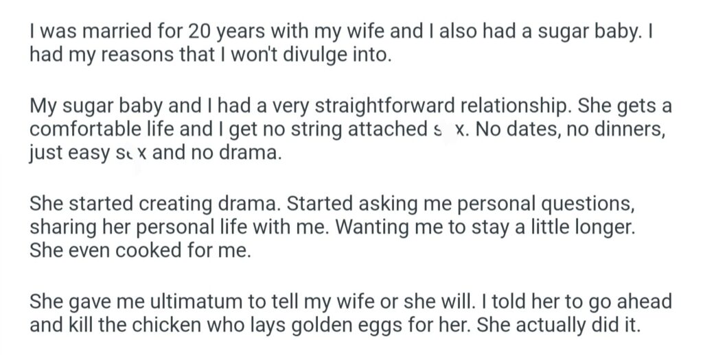 I Just Gosted My Sugar Baby After She Exposed Me To My Wife