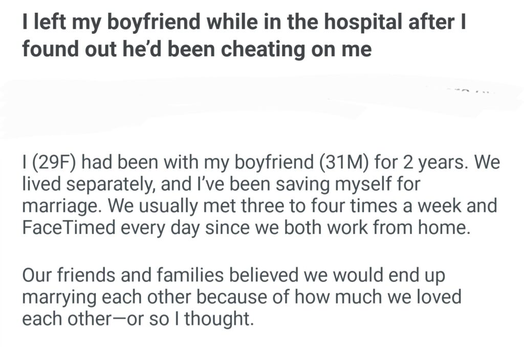 I Left My Boyfriend While In The Hospital After I Found He’d Been Cheating On Me