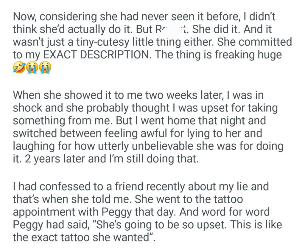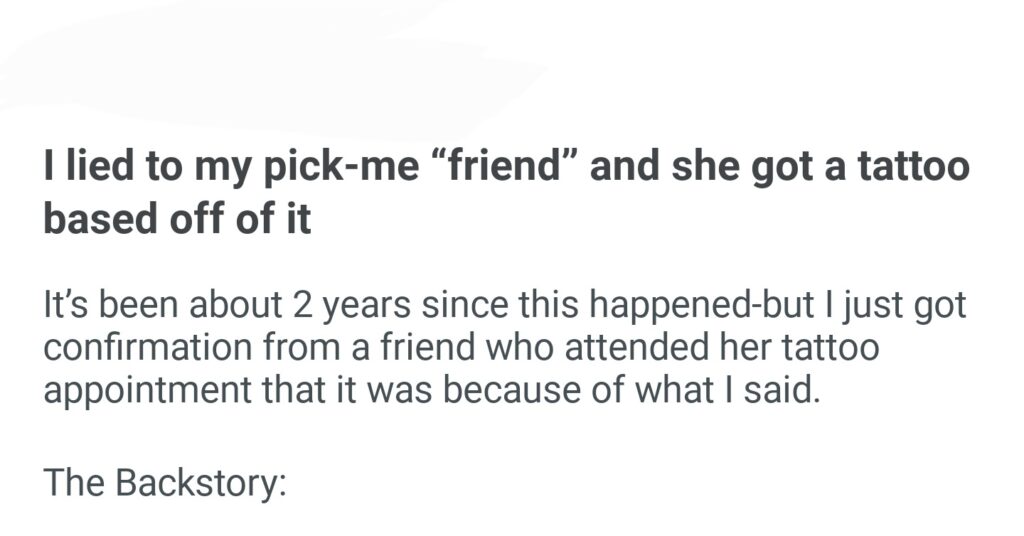 I Lied To My Pick Me Friend And She Got A Tattoo Based Off It