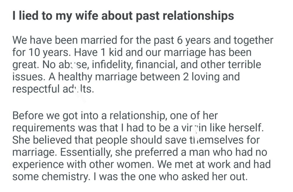 I Lied To My Wife About Past Relationships