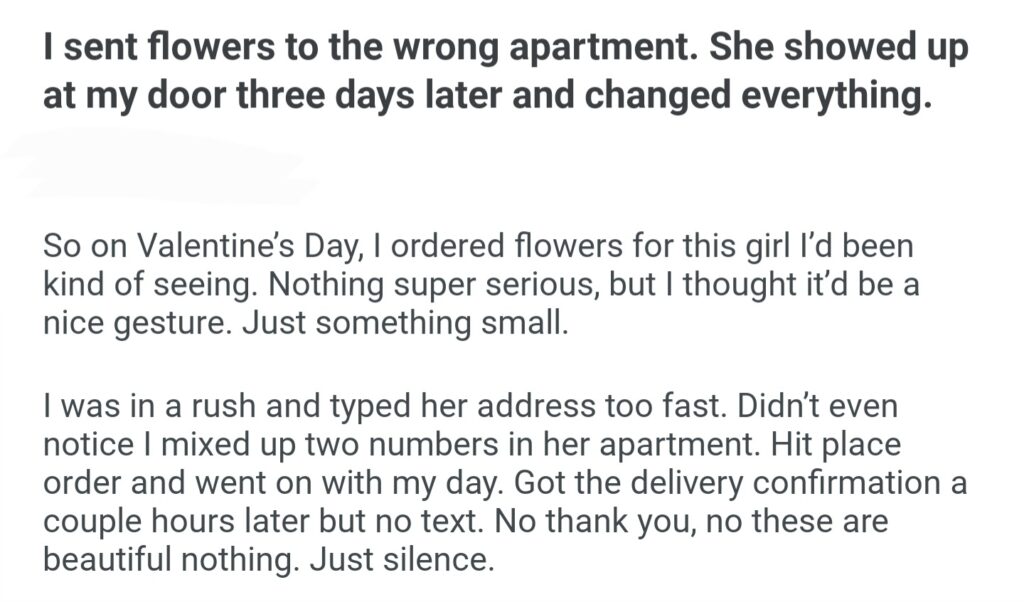 I Sent To The Wrong Apartment She Showed Up At My Door Three Days Later And Changed Everything