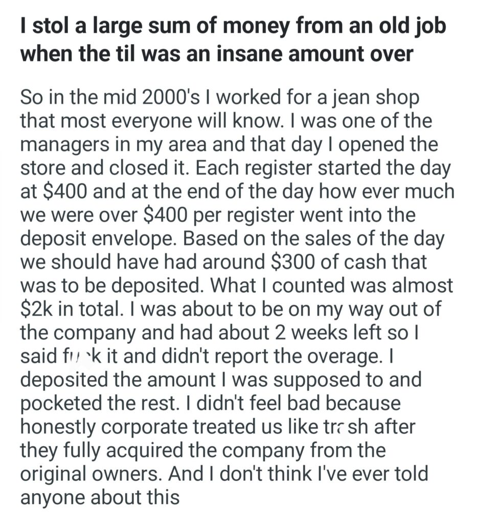 I Stol A Large Sum Of Money From An Old Job