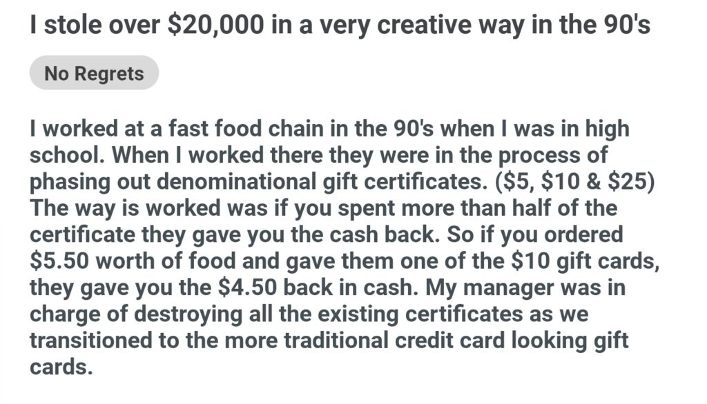 I Stole Over $20000 In Very Creative Way In The 90’s