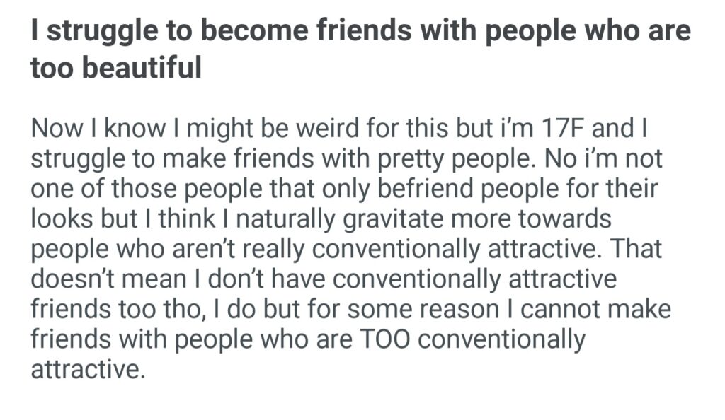 I Struggle To Become Friends With People Who Are Too Beautiful