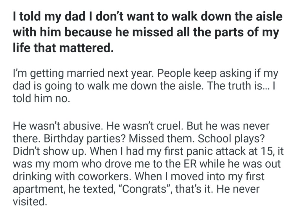 I Told My Dad I Dont Want To Walk Down The Aisle With Him
