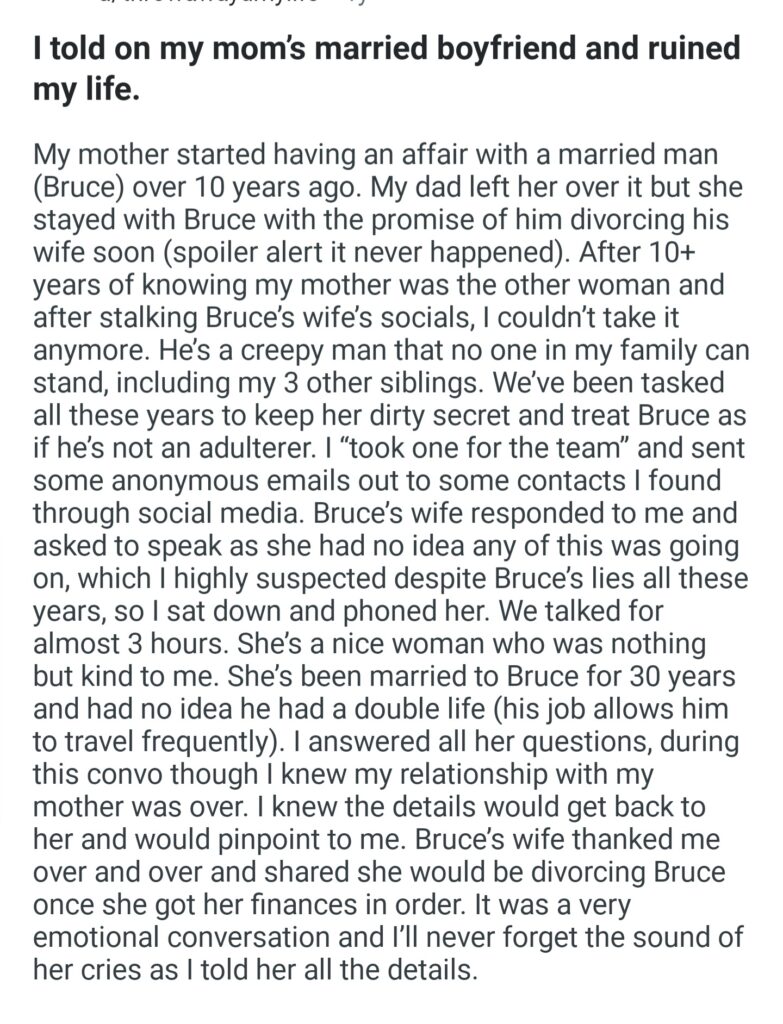 I Told On My Mom’s Married Boyfriend And Ruined My Life