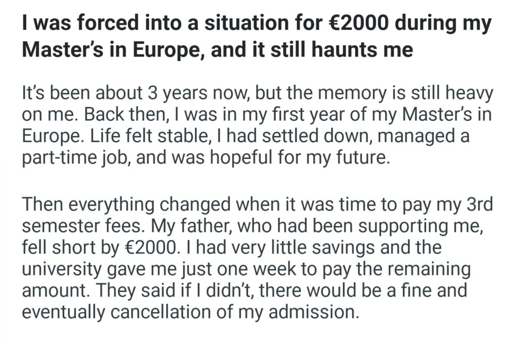 I Was Forced Into A Situation For £2000 During My Master’s In Europe And It Still Haunts Me