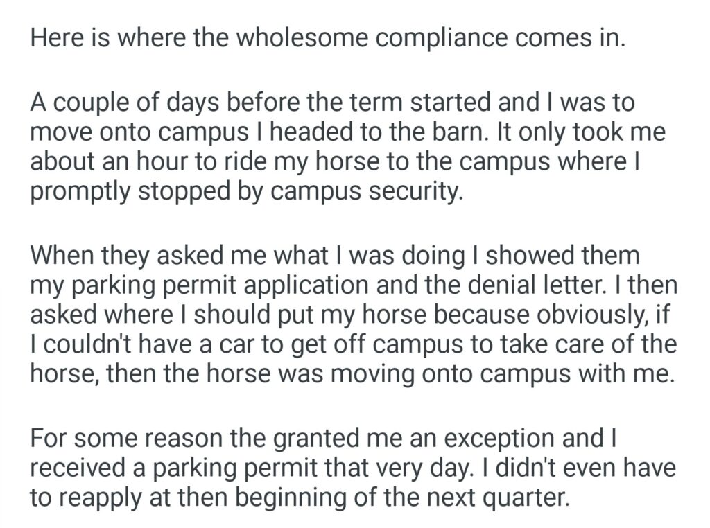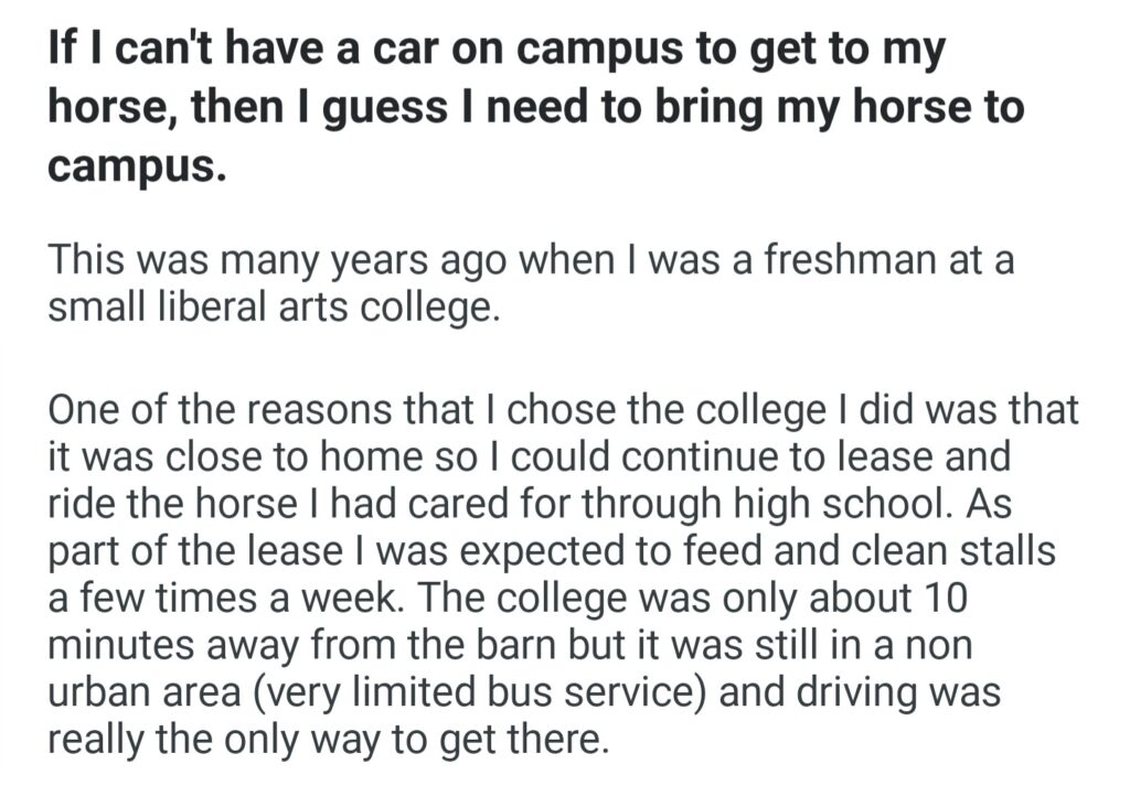 If I Can’t Have A Car On Campus To Get To My Horse Then I Guess I Need To Bring My Horse To Campus