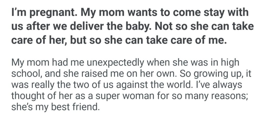 I’m Pregnant My Mom Wants To Come Stay With Us After We Deliver The Baby