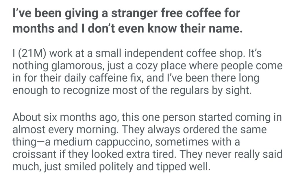 I’ve Been Giving A Stranger Free Coffee For Months And I Don’t Even Know Their Name