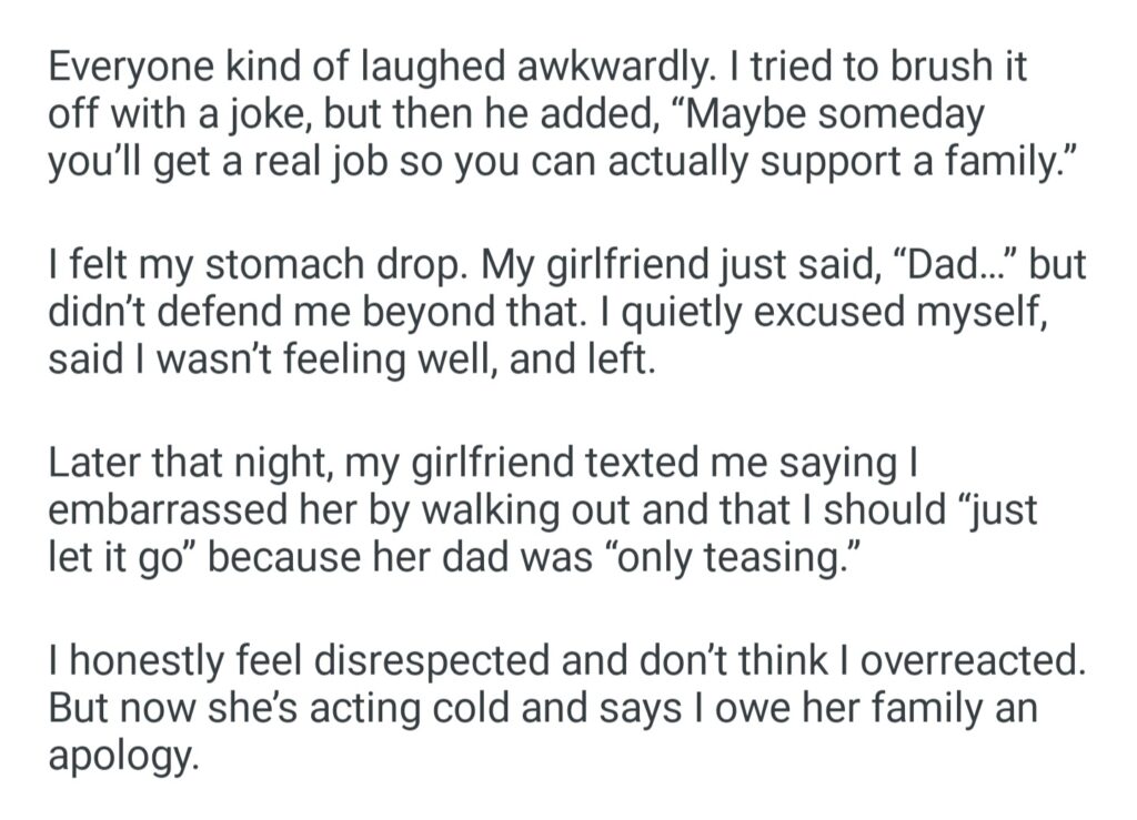 Leaving My Girlfriend’s Family Dinner After What Her Dad Said