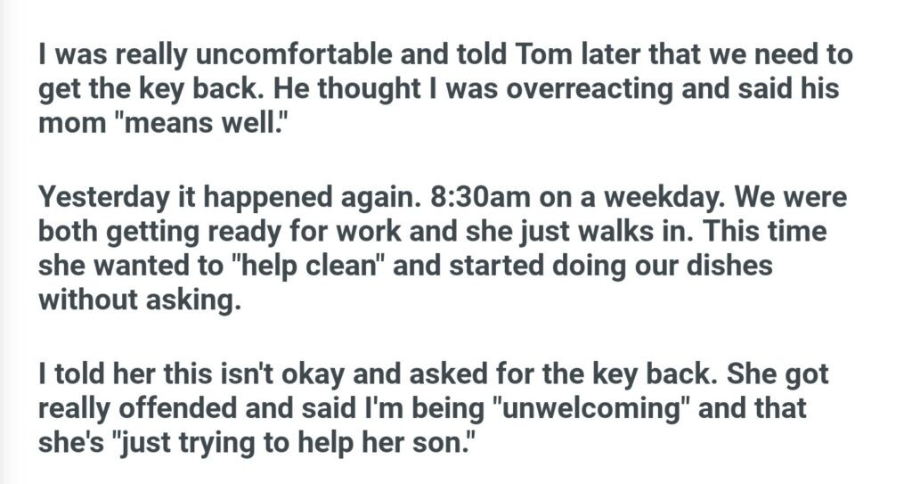 Letting My MIL Have A Key To Our House After She Let Herself In While We Were Sleeping