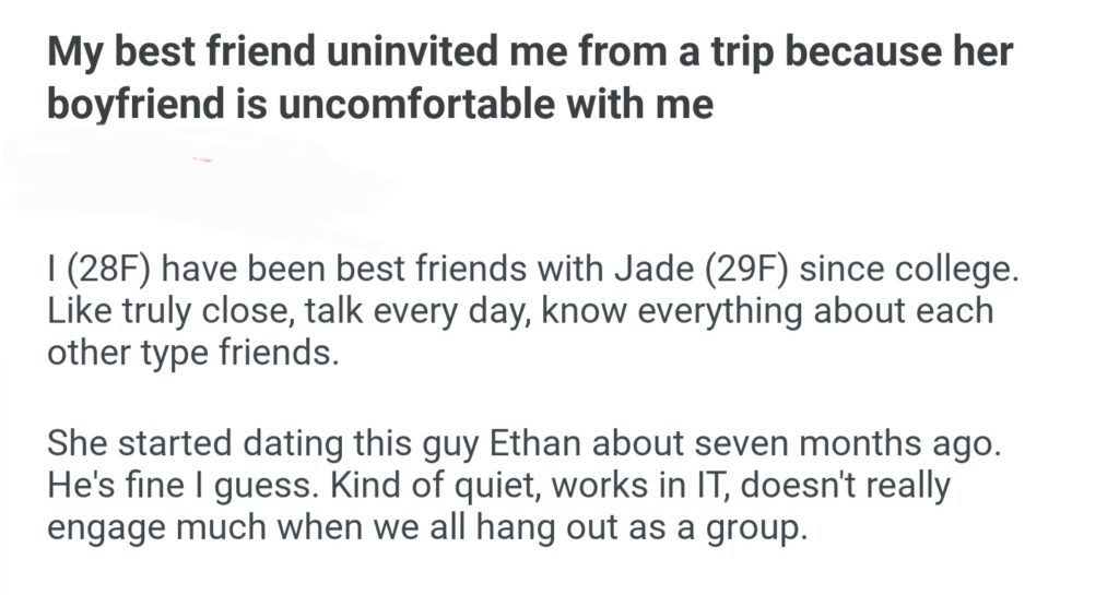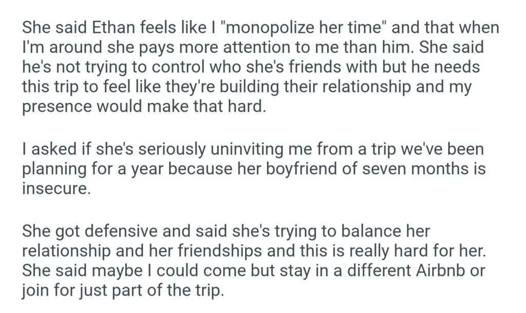 My Best Friend Uninvited Me From A Trip Because Her Boyfriend Is Uncomfortable With Me 28f