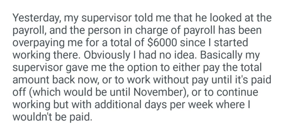 My Boss Has Been Overpaying Me And Is Now Asking For The Money Back