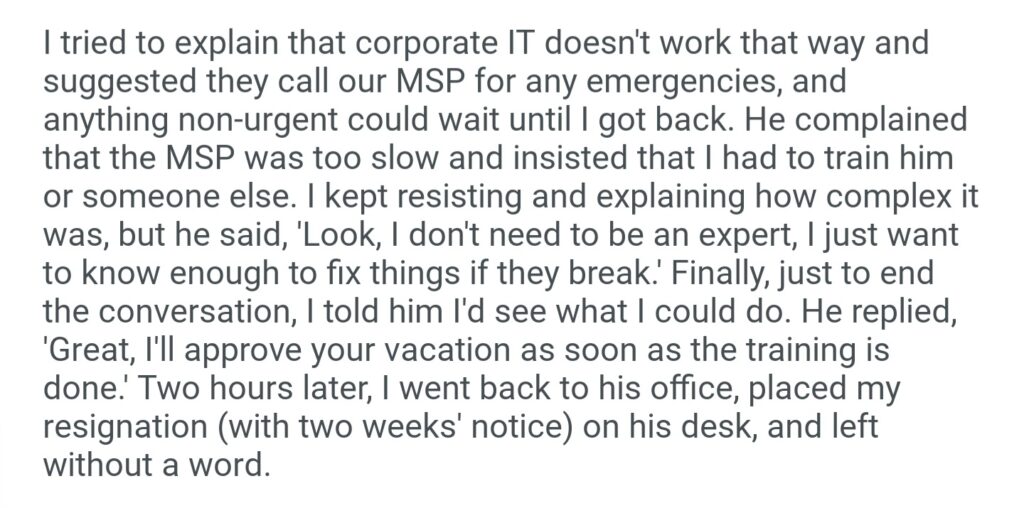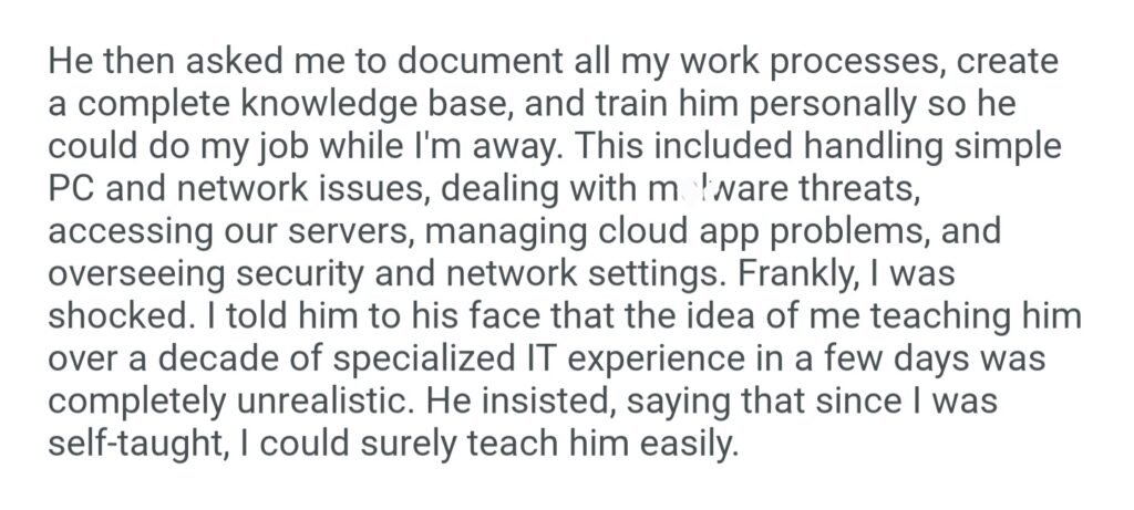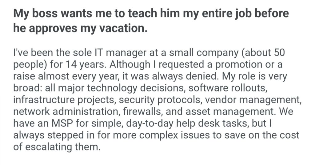 My Boss Wants Me To Teach Him My Entire Job Before He Approves My Vacation