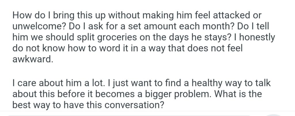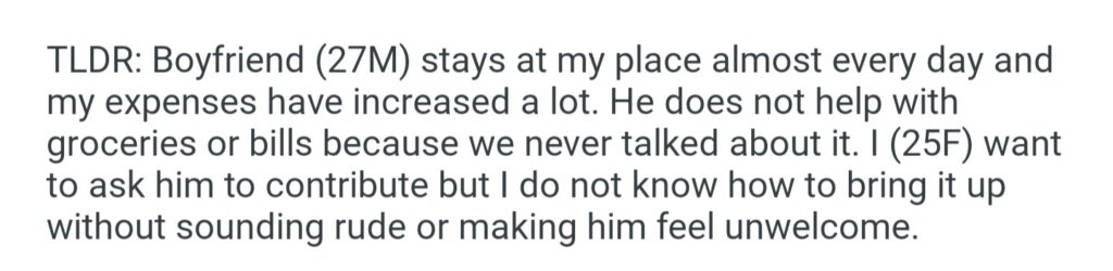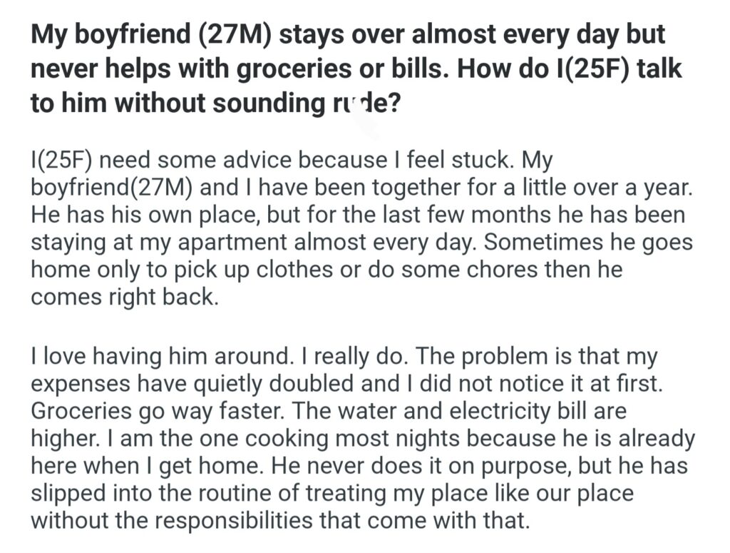 My Boyfriend 27M Stays Over Almost Every Day But Never Helps With Groceries
