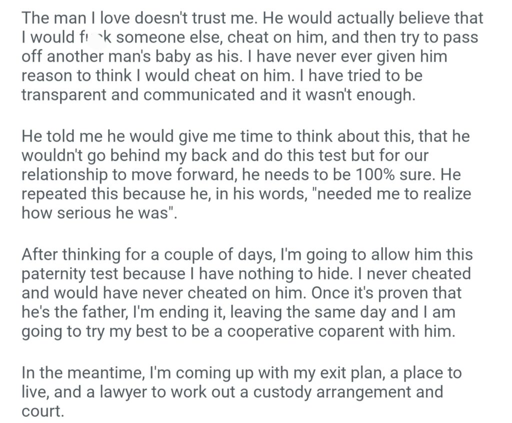 My Boyfriend Asked For A Paternity Test Of Our Child As Soon As Result Come