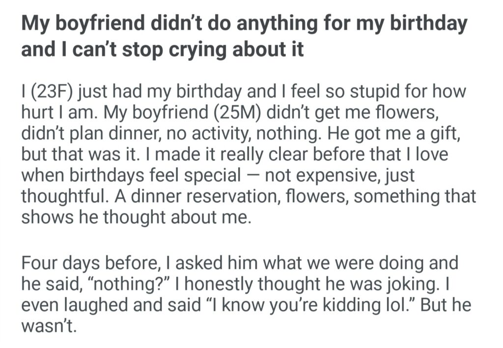 My Boyfriend Didn’t Do Anything For My Birthday And I Can’t Stop