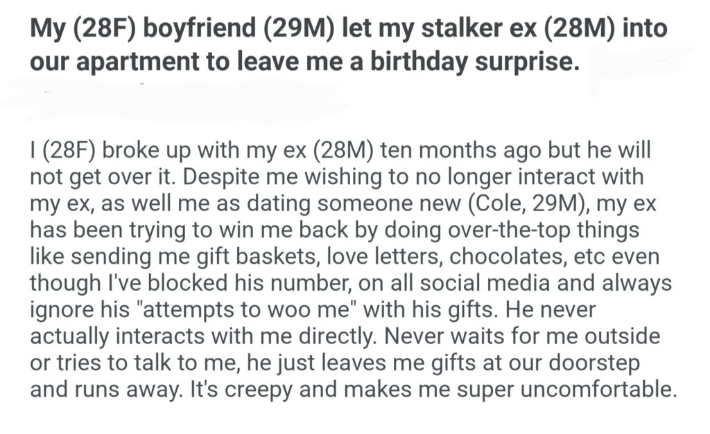 MY boyfriend Let My Stalker Ex Into Our Apartment To Leave Me A Birthday Surprise