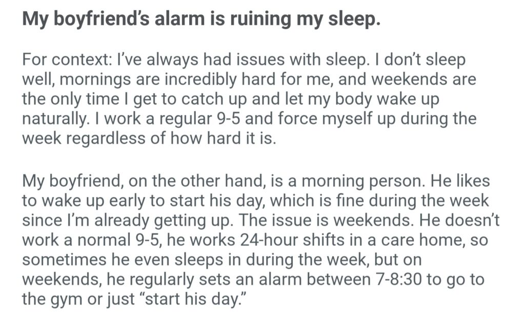 My Boyfriend’s Alarm Is Ruining My Sleep